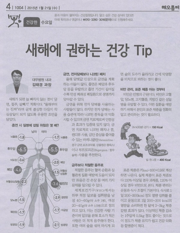[대우조선해양 해오름터] 새해에 권하는 건강 Tip 페이지 정보 대우병원 작성일15-03-18 14:01 조회36,142회 댓글0건 본문 [대우조선해양 해오름터] 새해에 권하는 건강 Tip 이전글 다음글 목록