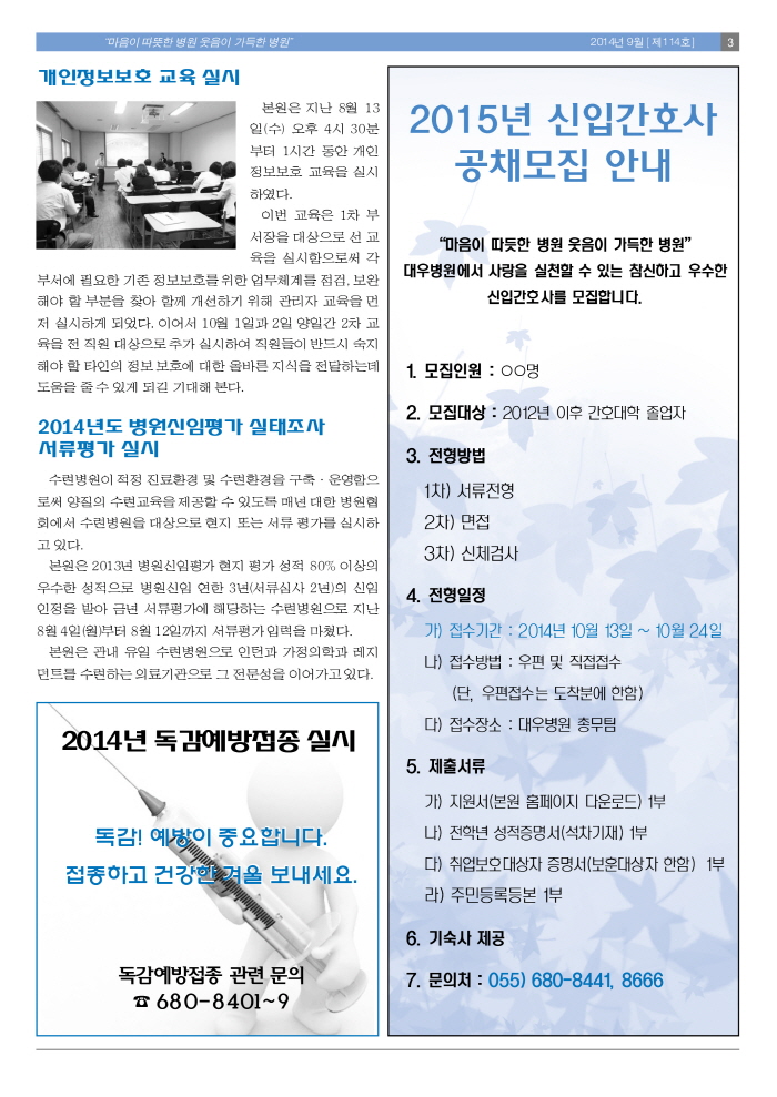 첨부파일 - 첨부파일: 소식지 1.jpg (355.0K) 103 2015-06-25 23:11:14 - 첨부파일: 사본 -114호소식지-2.jpg (2.3M) 82 2015-06-25 23:11:14 - 첨부파일: 소식지 2.jpg (357.9K) 78 2015-06-25 23:11:14 - 첨부파일: 소식지 4.jpg (436.3K) 78 2015-06-25 23:11:14 이전글다음글 목록 본문 14-09-01 114호